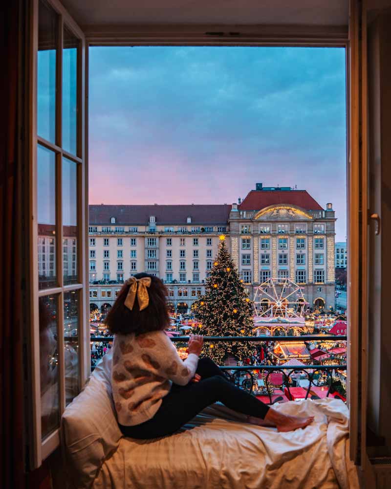 This hotel overlooks the magical Christmas Market in Dresden, Germany!